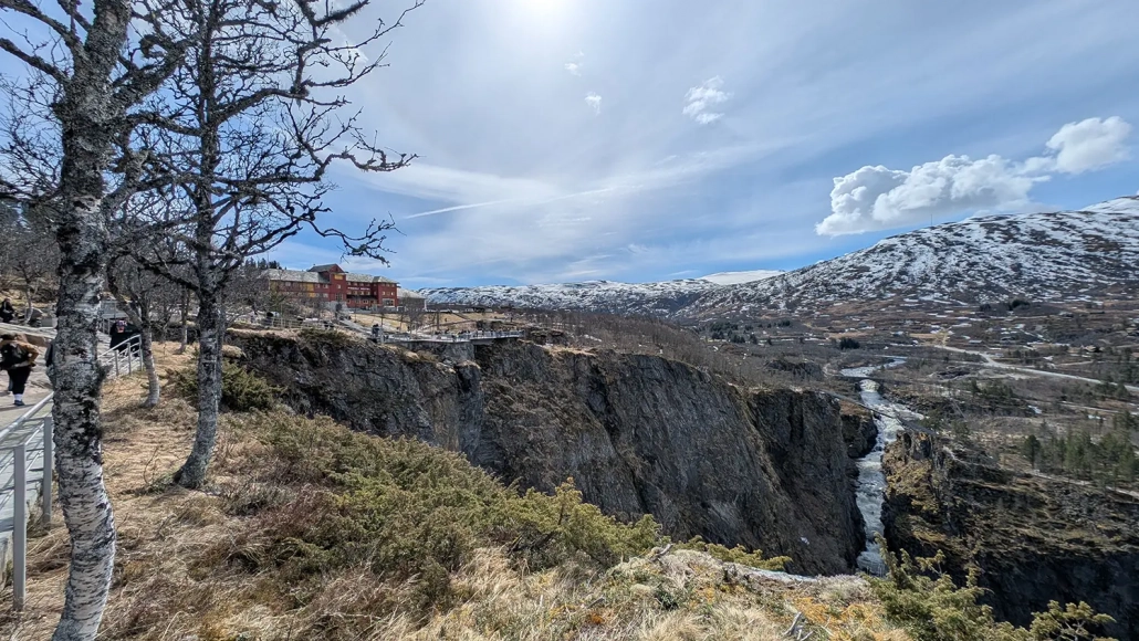 Um von See aus nach Eidfjord zu gelangen, fährt man zunächst durch den sehr tiefen (bis zu 900m) 190km langen Hardangerfjord. Der Eidfjord selbst ist 75km lang und wird von der großen Hardanger Hängebrücke überspannt, welche eine Spannweite von 1.300m besitzt und von zwei 200m hohen Pylonen gehalten wird. Eidfjord selbst ist ein kleiner Ort mit knapp 1.000 Einwohnern, von welchem dann z. B. Touren zum 183m hohen Wasserfall Voringsfossen möglich sind; die Fahrzeit beträgt etwa 25min.